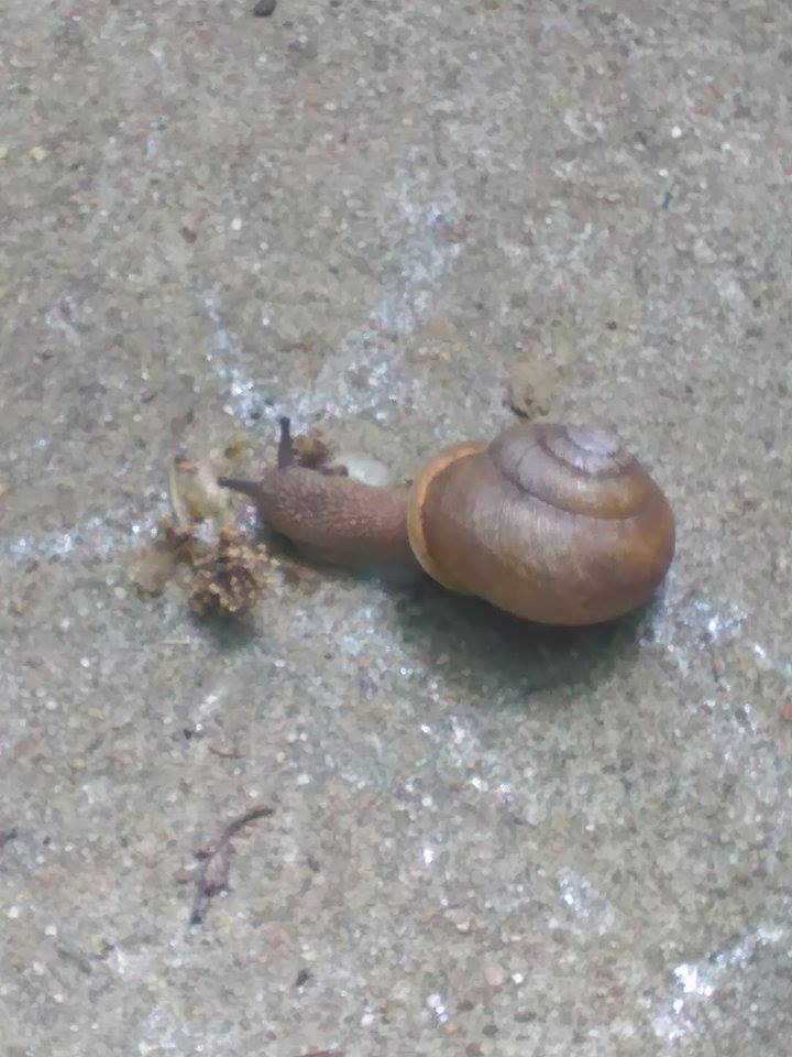 I had the girls "scavenger hunt"; M. has really sensitive skin and I'm not great at identifying poisonous leaves so I just had them point out things that they found rather then pick them up. (No one got sunburnt or bitten by bugs or even itchy! I'd call that a success!) After a while the girls wanted to count snails, we found 3.